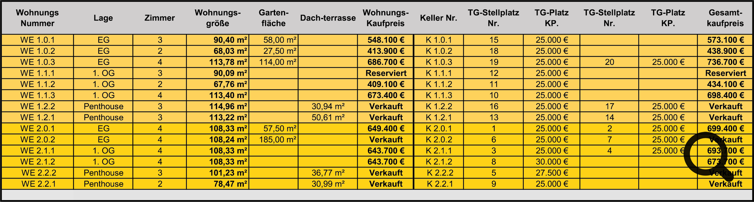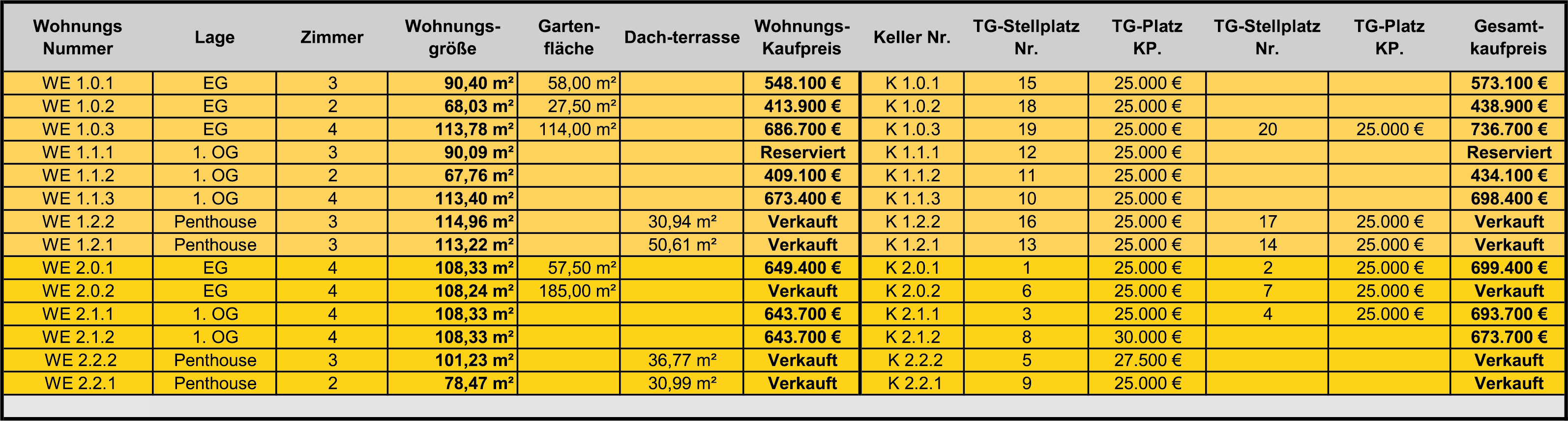 Zusammengefasst bietet die Wohnanlage eine hervorragende Lage, und bietet Lebensräume, welche in 2 bis 4 Zimmerwohnungen aufgeteilt sind. Für die Bewohner der beiden Häuser stehen weiterhin insgesamt 20 Tiefgaragenstellplätze bereit, von wo Sie bequem über einen Aufzug direkt vor Ihre Wohnung gelangen.